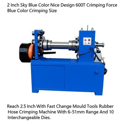 ฟ้าขนาด 2 นิ้วดีไซน์สวย 600T แรงจีบ สีฟ้าขนาดจีบถึง 2.5 นิ้วพร้อมเครื่องมือแม่พิมพ์ที่เปลี่ยนแปลงอย่างรวดเร็วเครื่องจีบท่อยางที่มีช่วง 6-51 มม. และแม่พิมพ์ที่เปลี่ยนได้ 10 ชิ้น 0