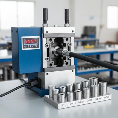 แรงย้ำสูง: เครื่องให้แรงย้ำที่แข็งแกร่ง 600T, ทำให้มั่นใจได้ถึงการเชื่อมต่อที่ปลอดภัยและเชื่อถือได้ เหมาะสำหรับระบบไฮดรอลิกแรงดันสูง